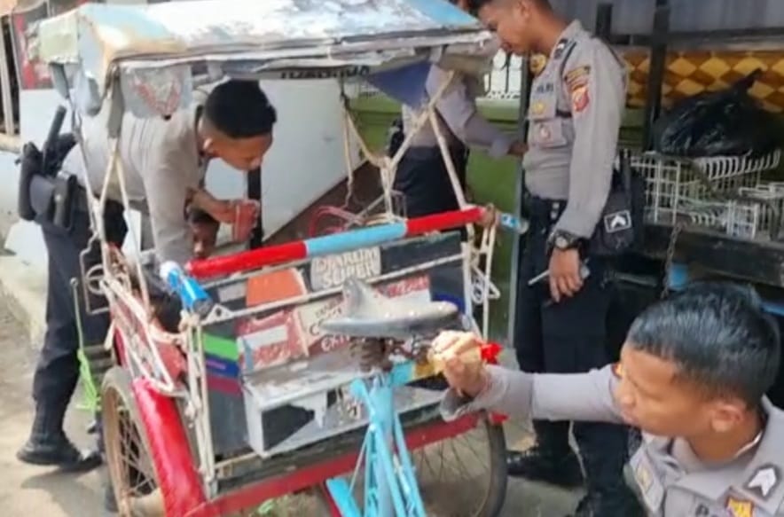 Selain Bagikan Sembako Kepada Abang Becak, Anggota Sat Samapta Polres Majalengka Bantu Poles Becaknya Lebih Cantik