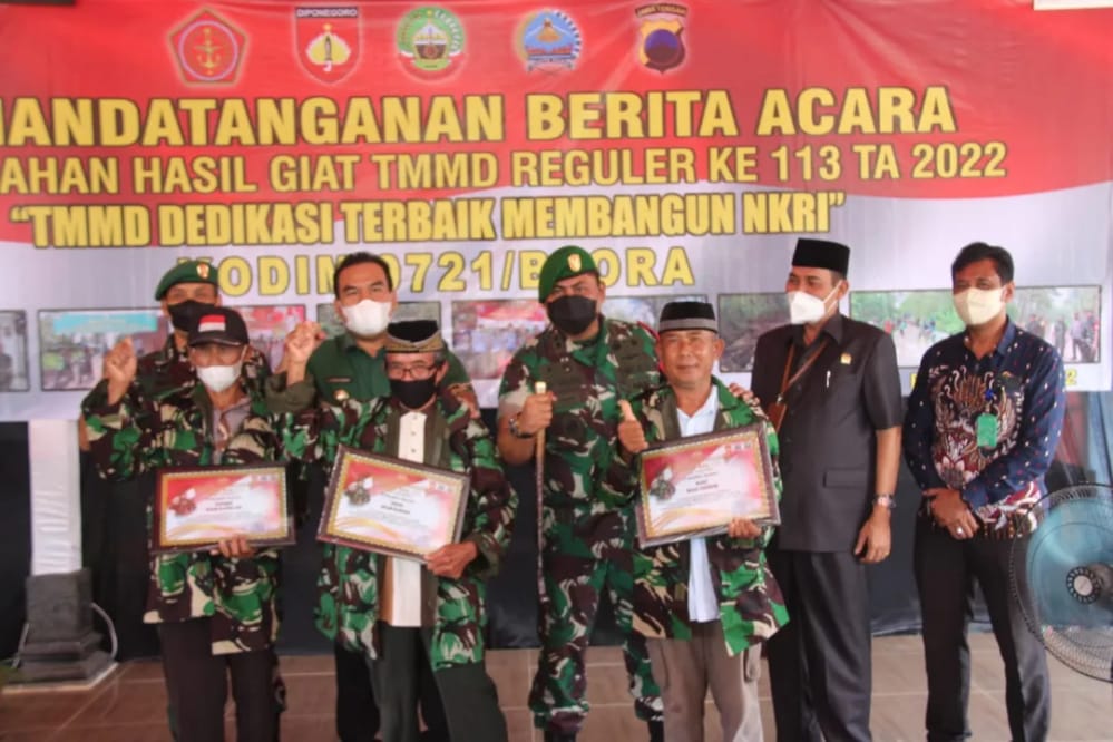 Blora – medialidikkrimsus-ri.net – Kegiatan program TNI Manunggal Membangun Desa (TMMD) Reguler ke-113 Kodim 0721/Blora dengan tema “TMMD Dedikasi Terbaik Membangun NKRI” yang berada di Desa Pengkoljagong, Kecamatan Jati, Kabupaten Blora secara resmi ditutup, Kamis (09/6). Penutupan TMMD tersebut, ditandai dengan penandatanganan naskah serta serah terima hasil TMMD, dari Komandan Kodim 0721/Blora Letkol Inf Andy Soelistyo Kurniawan Putro, S.Sos., M.Tr (Han) selaku Dan Satgas TMMD kepada Bupati Blora H. Arief Rohman, S.IP., M.Si., yang turut disaksikan oleh Komandan Korem 073/Makutarama Kolonel Inf Purnomosidi, S.I.P., M.A.P., beserta segenap jajaran Forkopimda yang…