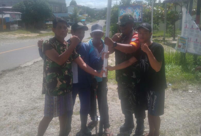 Danramil 1206-09 Jongkong Tinjau Semangat Pemasangan Bendera Merah Putih HUT RI ke 77 Desa Sira Jaya Lintas Pengkadan