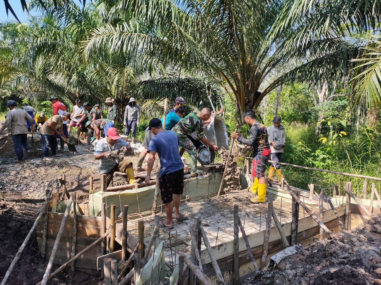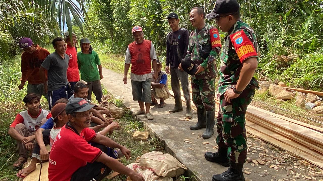 Satgas Opster TNI Kodim 1208/Sambas Bersama Masyarakat Kebut Pengerjaan Jembatan Desa Santaban