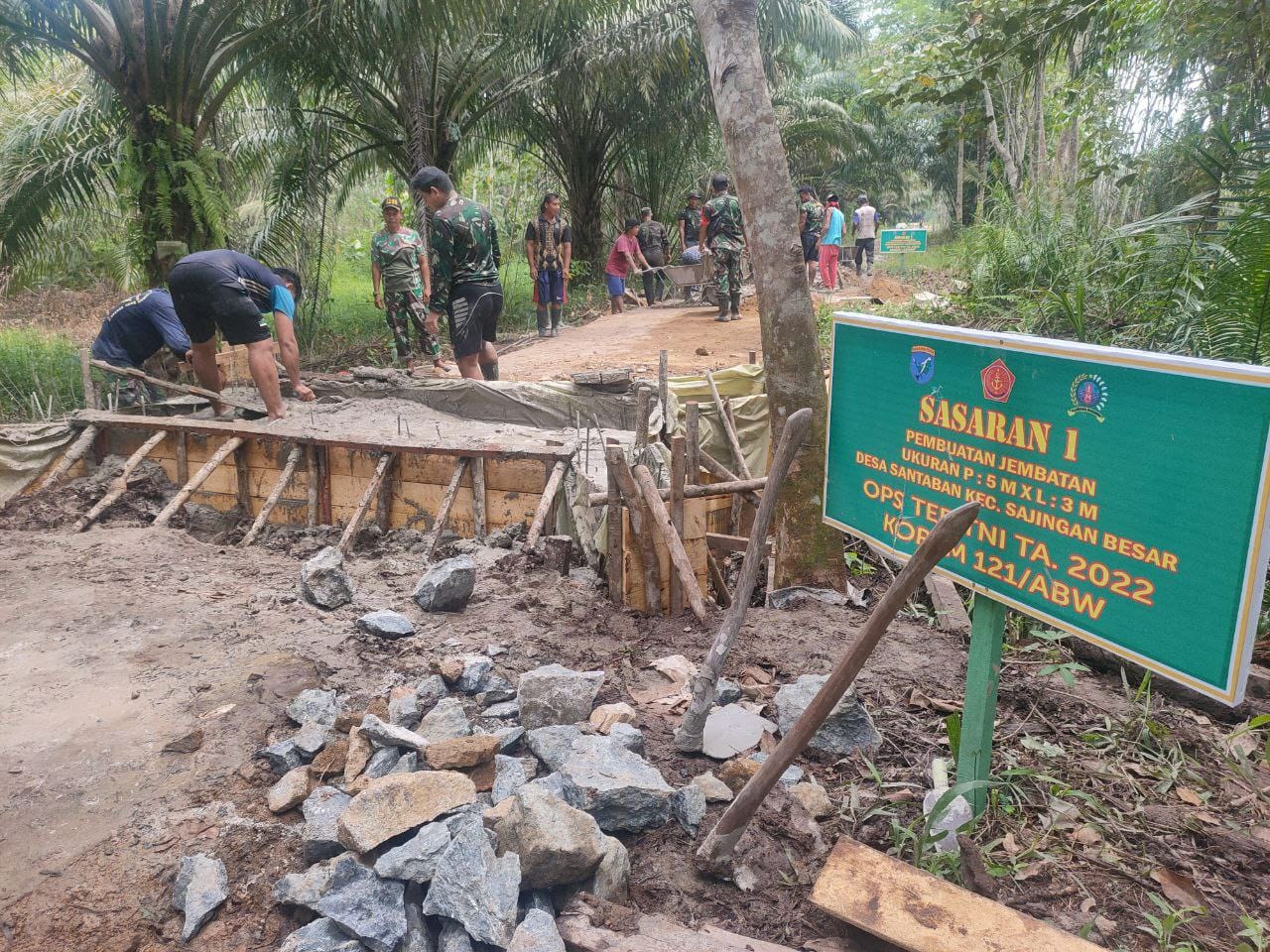 Opster TNI Wilayah Kodim 1208/Sambas Optimalkan Pengerjaan Jembatan Desa Santaban
