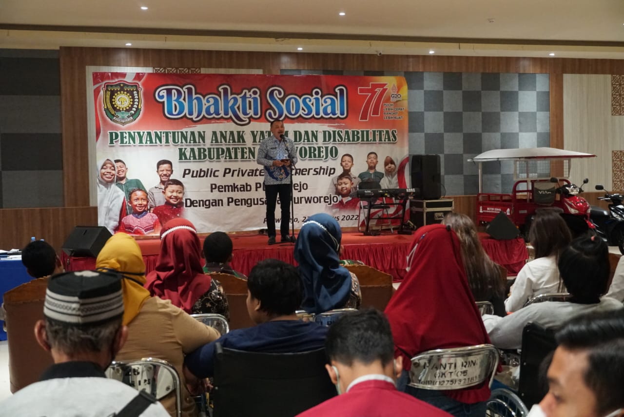 Purworejo – medialidikkrimsus-ri.net – Para pengusaha di Kabupaten Purworejo bekerjasama dengan Dinas Sosial Pengendalian Pendudukan dan Keluarga Berencana menunjukkan kepeduliannya dengan memberikan bantuan bagi anak yatim, piatu, yatim piatu dan penyandang disabilitas, Selasa (23/08/2022). Bantuan juga datang dari Kementerian Sosial dan Sentra Baturaden yang memberikan bantuan kendaraan. Hadir dalam acara yang dipusatkan di Ganeca Convention Hall tersebut diantaranya Bupati Purworejo RH Agus Bastian SE MM, Ketua DPRD Dion Agasi Setyabudi SIkom MSi , Dandim 0708 Letkol Inf Lukman Hakim SSos MSi, Perwakilan Forkopimda, sejumlah Kepala Perangkat Daerah, para anak yatim,…