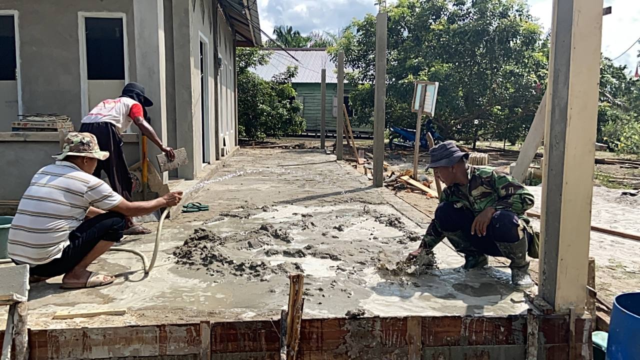 Sambas – medialidikkrimsus-ri.net – Kelanjutan pembangunan Musholla Nur Hidayatullah Desa Sebubus Terus Kejar Target Capaian oleh Personel Satgas Opster TNI Kodim 1208/Sambas, pada hari ini yaitu tahap membangun pengerjaan memasang papan tiang garasi dan tahap pengecoran lantai teras, Senin (22/08/22) Warga sangat gembira karena impian untuk memiliki bangunan musholla baru di Dusunnya akan segera terkabul, demi lebih mendapatkan suasana yang lebih nyaman lagi dalam melaksanakan ibadah, Ucap Babinsa Sebubus Serda La Rasulu Serda Rasulu mengatakan “Hari ini sudah sampai tahap memasang mal tiang bagian atas dan pengecoran lantai teras musholla…