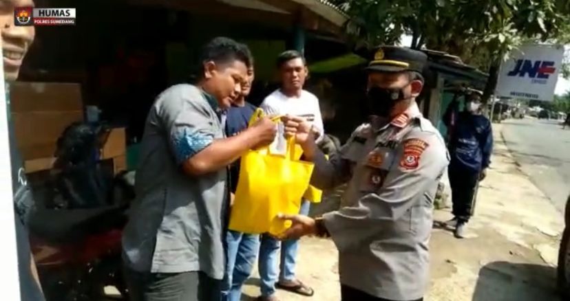 Polsek Conggeang Bagikan Paket Sembako Kepada Pengemudi Ojeg Pangkalan Di Wilayah Kecamatan Conggeang