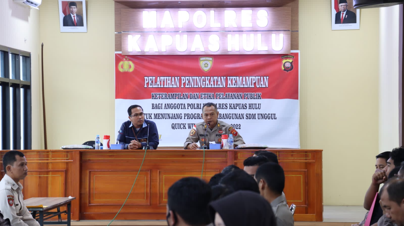 Kapuas Hulu – medialidikkrimsus-ri.net – Polres Kapuas Hulu Polda Kalbar melaksanakan kegiatan Latihan peningkatan kemampuan (Latkatpuan) Keterampilan dan Etika Pelayanan Publik bagi personil Polri khususnya personil Polres Kapuas Hulu. Kegiatan Latkatpuan tersebut dilaksanakan di aula Polres Kapuas Hulu pada hari Rabu tanggal 9 November 2022. Dibuka oleh Kabag SDM AKP Widiyanto yang mewakili Kapolres Kapuas Hulu. Kabag SDM Polres Kapuas Hulu AKP Widiyanto, mengatakan bahwa latihan peningkatan kemampuan (Latkatpuan) ini diikuti oleh Pa Urmin, Ka Urmintu serta operator Bag, Sat, Si Polres Kapuas Hulu dan Kasium Polsek jajaran. “Kegiatan Latkatpuan…