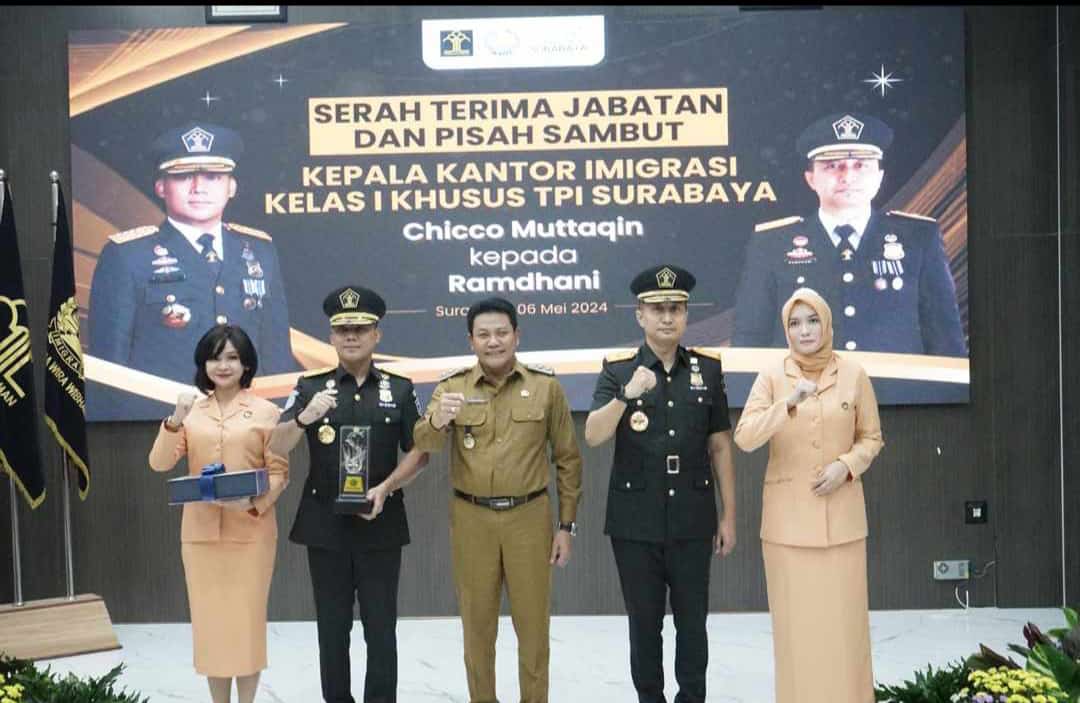 Sidoarjo,Medialidikkrimsus.ri.net-Wakil Bupati Sidoarjo H. Subandi S.H,M.Kn berterimakasih kepada Kantor Imigrasi Kelas I Khusus TPI Surabaya atas sinerginya dalam pembangunan selama ini. Salah satunya dengan kehadiran pelayanan keimigrasian di Mal Pelayanan Publik/MPP Lingkar Timur Sidoarjo. Kemudahan pelayanan pasport dapat dirasakan warga Sidoarjo yang jauh dari Kantor Imigrasi Kelas I Khusus TPI Surabaya di Jalan Raya Juanda Sedati. Hal tersebut diungkapkan Wabup H. Subandi usai menghadiri Sertijab dan pisah sambut Kepala Kantor Imigrasi Kelas I Khusus TPI Surabaya di Kantor Imigrasi Kelas I Khusus TPI Surabaya Jalan Raya Juanda Sedati, Senin, (6/5).…