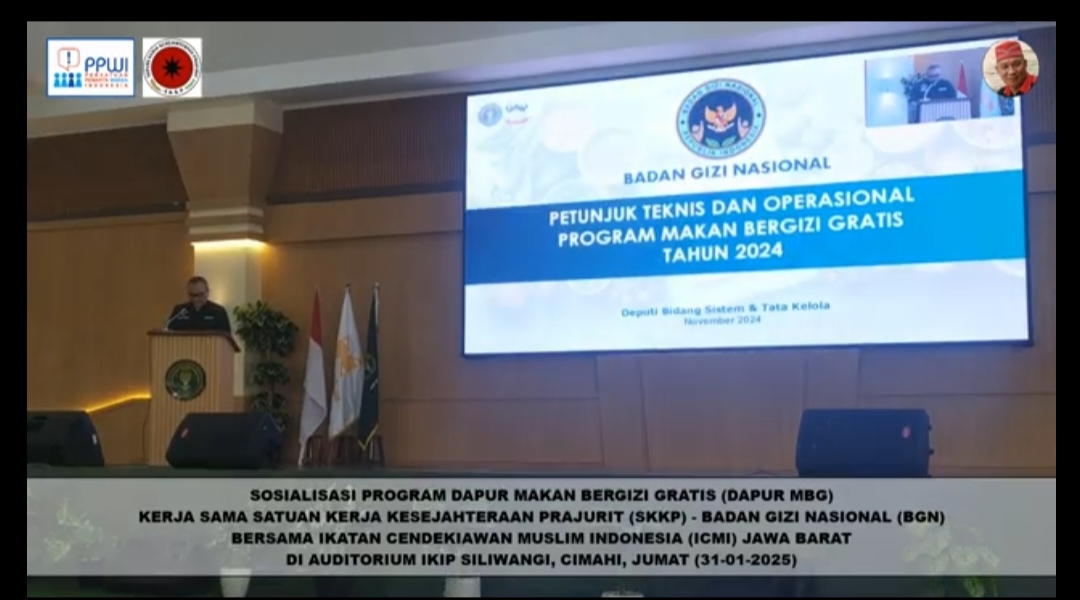 Cimahi – Satuan Kerja Kesejahteraan Prajurit (SKKP) melakukan kegiatan Sosialisasi Program Dapur Makan Bergizi Gratis (Dapur MBG) – Badan Gizi Nasional (BGN) bertempat di Auditorium Kampus Institut Keguruan dan Ilmu Pendidikan (IKIP) Siliwangi, Cimahi, Bandung, Jawa Barat, Jumat, 31 Januari 2025. Kegiatan itu terselenggara berkat kerjasama dengan Pengurus Organisasi Wilayah (Orwil) Ikatan Cendekiawan Muslim Indonesia (ICMI) Jawa Barat. Hadir pada acara tersebut sejumlah pengurus SKKP Pusat, antara lain, Brigjen TNI (Purn) Resmanto Widodo Putro, Rona Kauripan, dan Deni Kumentas. Selain itu, terlihat hadir juga Ketua Umum Persatuan Pewarta Warga Indonesia…