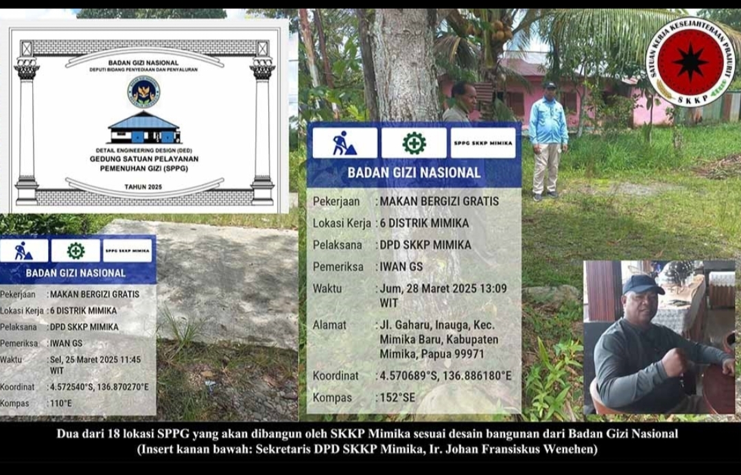 Mimika, Papua Tengah – Dalam upaya mewujudkan visi Indonesia Emas 2045, Sekretariat Daerah (Setda) Kabupaten Mimika bekerja sama dengan Dewan Pimpinan Daerah (DPD) Satuan Kerja Kesejahteraan Prajurit (SKKP) Mimika akan melaksanakan acara peluncuran (launching) pembangunan18 Dapur Sehat (Satuan Pelayanan Pemenuhan Gizi – SPPG) yang akan mengelola penyediaan makanan bergizi gratis bagi anak sekolah di Kabupaten Mimika, Provinsi Papua Tengah. Menurut rencana, acara tersebut akan berangsung pada tanggal 15 April 2025 mendatang. Hal tersebut diungkapkan Ketua DPD SKKP Mimika, Tuan Stingal Johnny Beanal, kepada media ini melalui jaringan WhatsApp-nya. “Acara peluncuran…