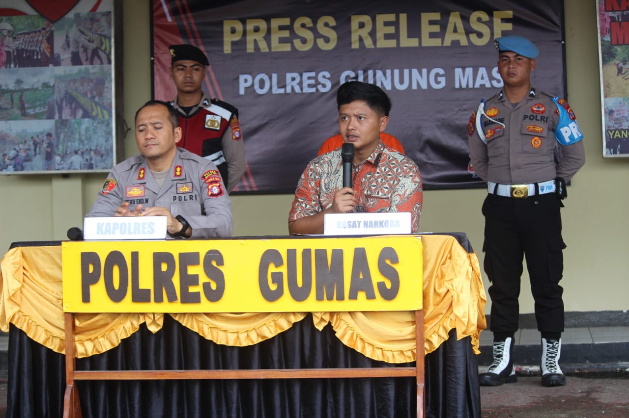Kuala Kurun – Satuan Reserse Narkoba (Satnarkoba) Polres Gunung Mas kembali mengungkap peredaran narkotika Gol 1 jenis Sabu. Seorang perempuan berinisial NW (35 tahun), yang merupakan seorang residivis kasus narkoba, berhasil diringkus di kediamannya di Jalan Desa Pilang Munduk, Kecamatan Kurun, pada Rabu malam, 21 Mei 2025. Dari tangan tersangka, petugas berhasil mengamankan barang bukti narkotika jenis shabu dengan berat kotor mencapai 99,88 gram. Pengungkapan ini berawal dari informasi dari masyarakat, yang ditindaklanjuti dengan penyelidikan intensif oleh personel Satnarkoba Polres Gunung Mas mengenai adanya dugaan transaksi narkoba di rumah NW.…