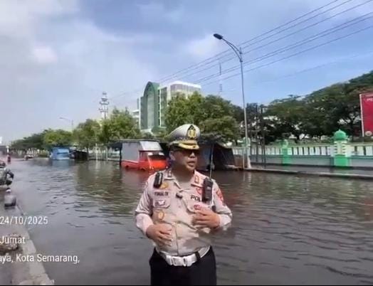Semarang-Medialidikkrimsus-ri.net-Genangan air yang belum surut selama dua hari terakhir membuat kawasan Kaligawe, Kota Semarang, hingga Jumat (23/10/2025) pagi masih lumpuh total. Arus lalu lintas di jalur utama penghubung Semarang–Demak itu tersendat panjang akibat banjir setinggi lutut orang dewasa atau sekitar 30 sentimeter yang masih menggenangi badan jalan, terutama di depan Rumah Sakit Sultan Agung Semarang. Kasat Lantas Polrestabes Semarang AKBP Yunaldi, S.Pd. turun langsung memimpin pemantauan dan pengaturan arus lalu lintas di lokasi. Ia menyampaikan bahwa hingga saat ini jalur Kaligawe belum dapat dilalui kendaraan kecil, karena genangan air masih…