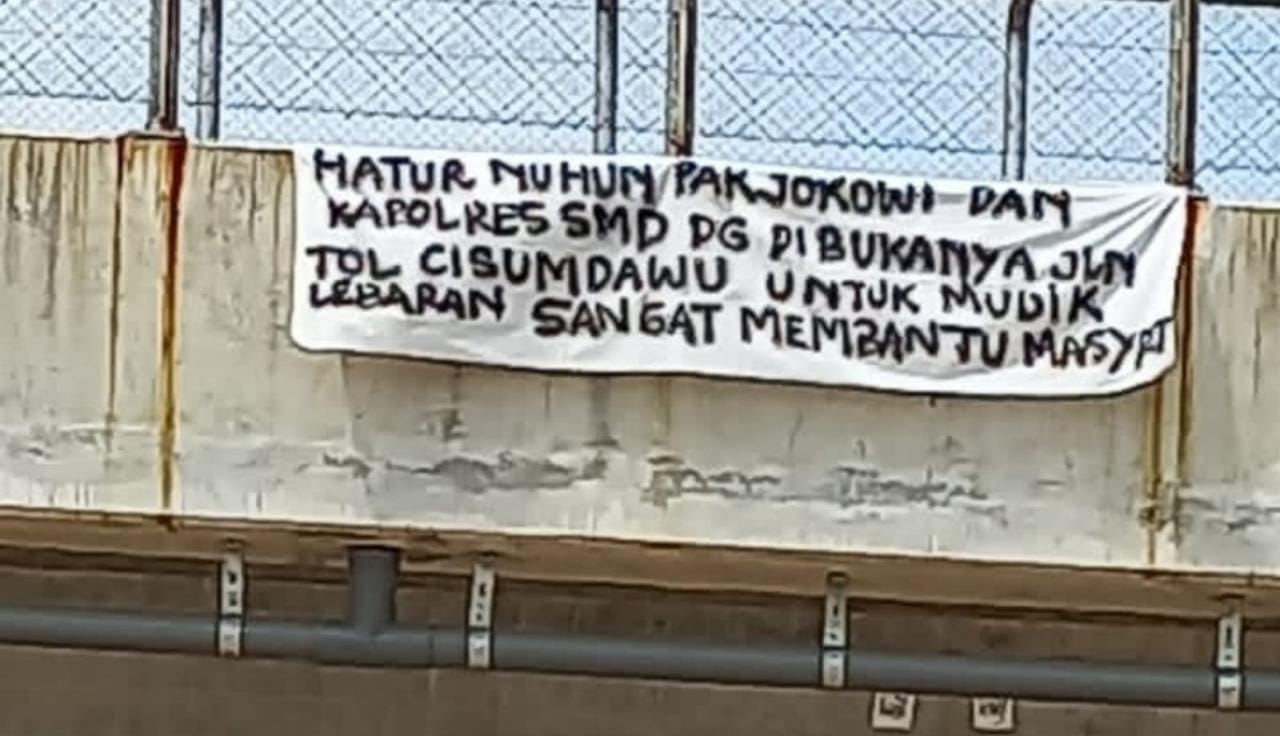 “Selain itu kami mendapat dukungan dan apresiasi dari warga masyarakat dengan adanya pemasangan spanduk apresiasi kepada pemerintah dan khususnya kepada Kapolres Sumedang terkait dibukanya Tol Cisumdawu tersebut”. Pungkas Dedi.