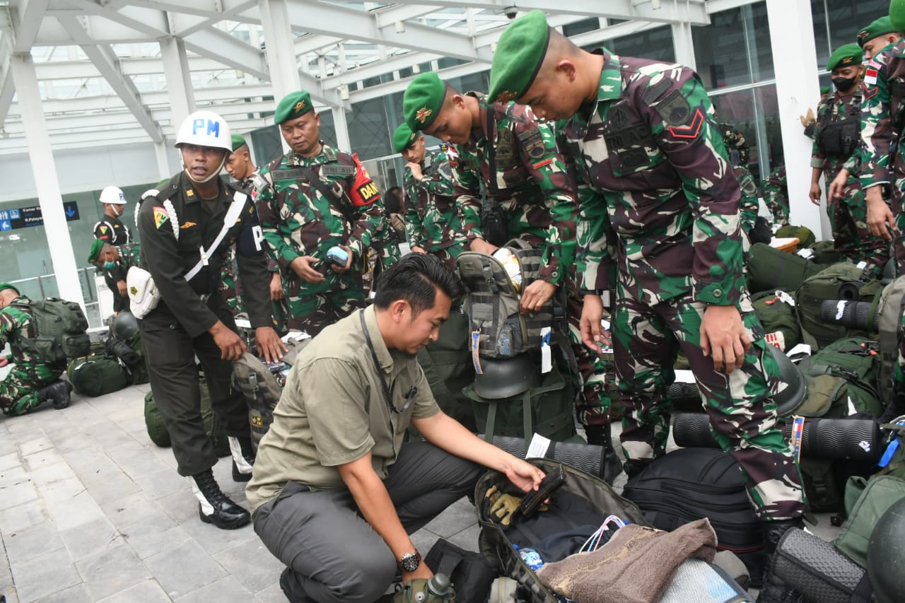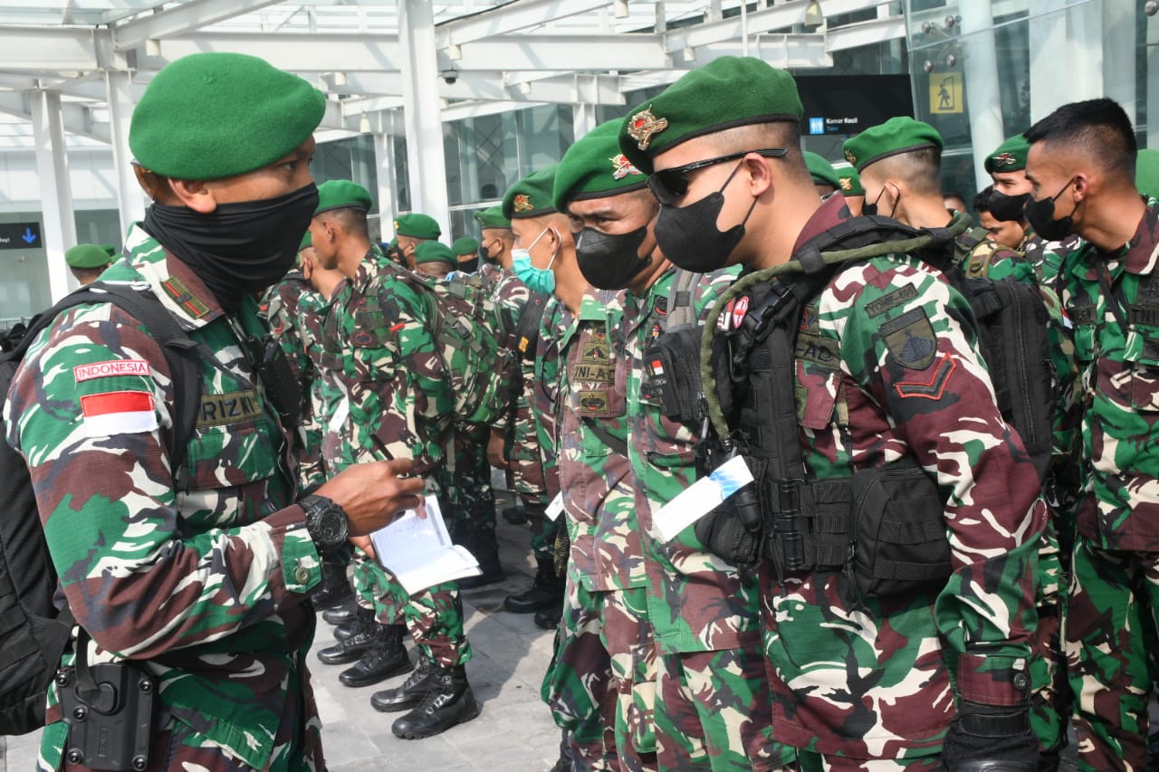 Semarang – medialidikkrimsus-ri.netMewakili Pangdam IV/Diponegoro Mayjen TNI Widi Prasetijono, Asops Kasdam Kolonel Inf Horasman Pakpahan, S.I.P., sambut satuan purna tugas Satgas Yonif 405/Surya Kusuma kembali dari Operasi Pengamanan wilayah Objek Vital Nasional (Obvitnas) PT Freeport Indonesia di wilayah Papua, bertempat di Bandara Ahmad Yani Semarang. Selasa (4/4/2023).