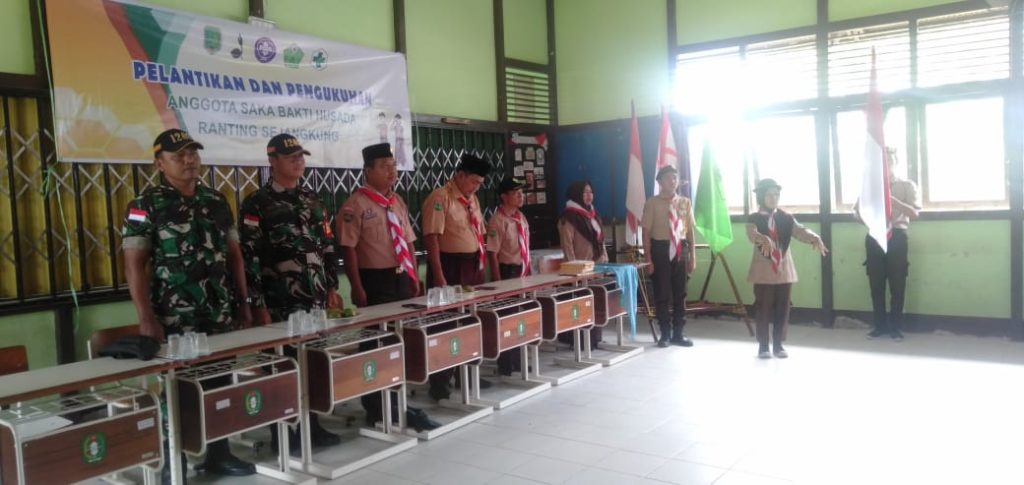 Kegiatan pelantikan Saka Wira Husada siswa SMAN 1 Sejangkung Tahun 2023 – 2024 yang di hadiri Babinsa Sekuduk Koramil 02/Sejangkung Kodim 1208/Sambas Serda Hermanto program tahunan sekolah SMAN Sejangkung.