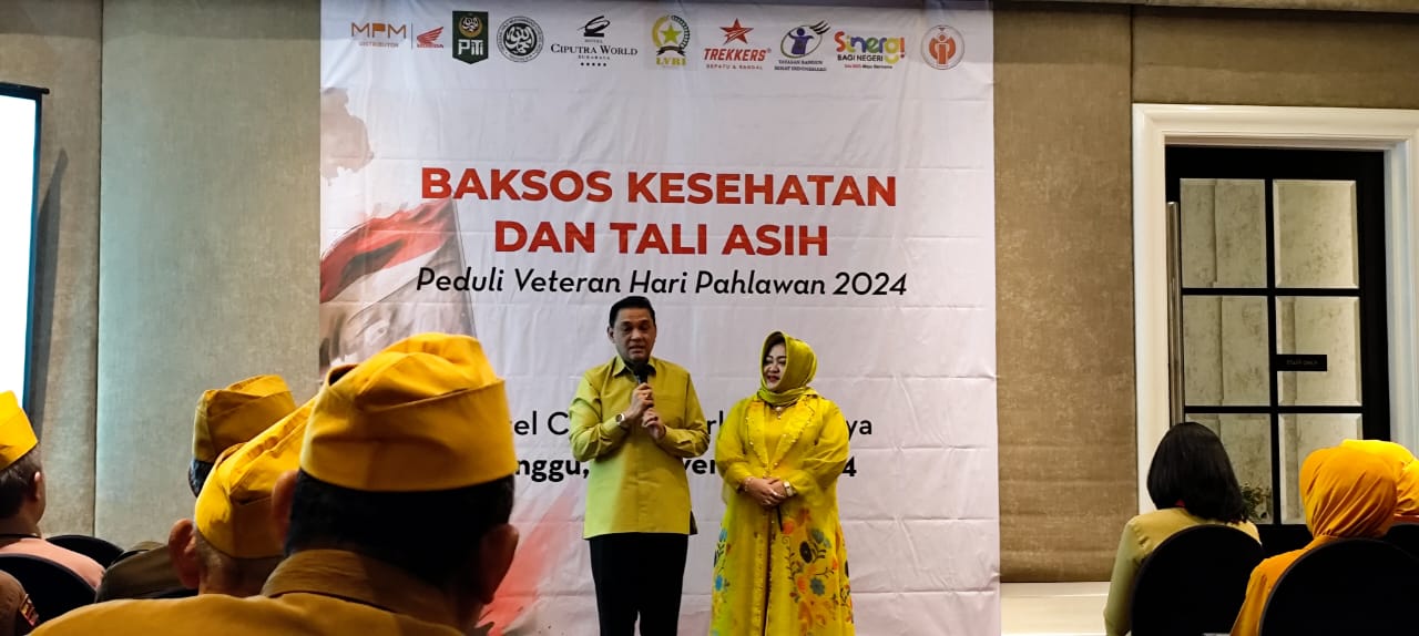 Kegiatan ini bertemakan Baksos Kesehatan dan Tali Asih, Peduli Veteran Hari Pahlawan 2024 dan telah sukses diselenggarakan di Glory Meeting Room Lantai 7 Hotel Ciputra World Surabaya ( Minggu 10/11/2024)