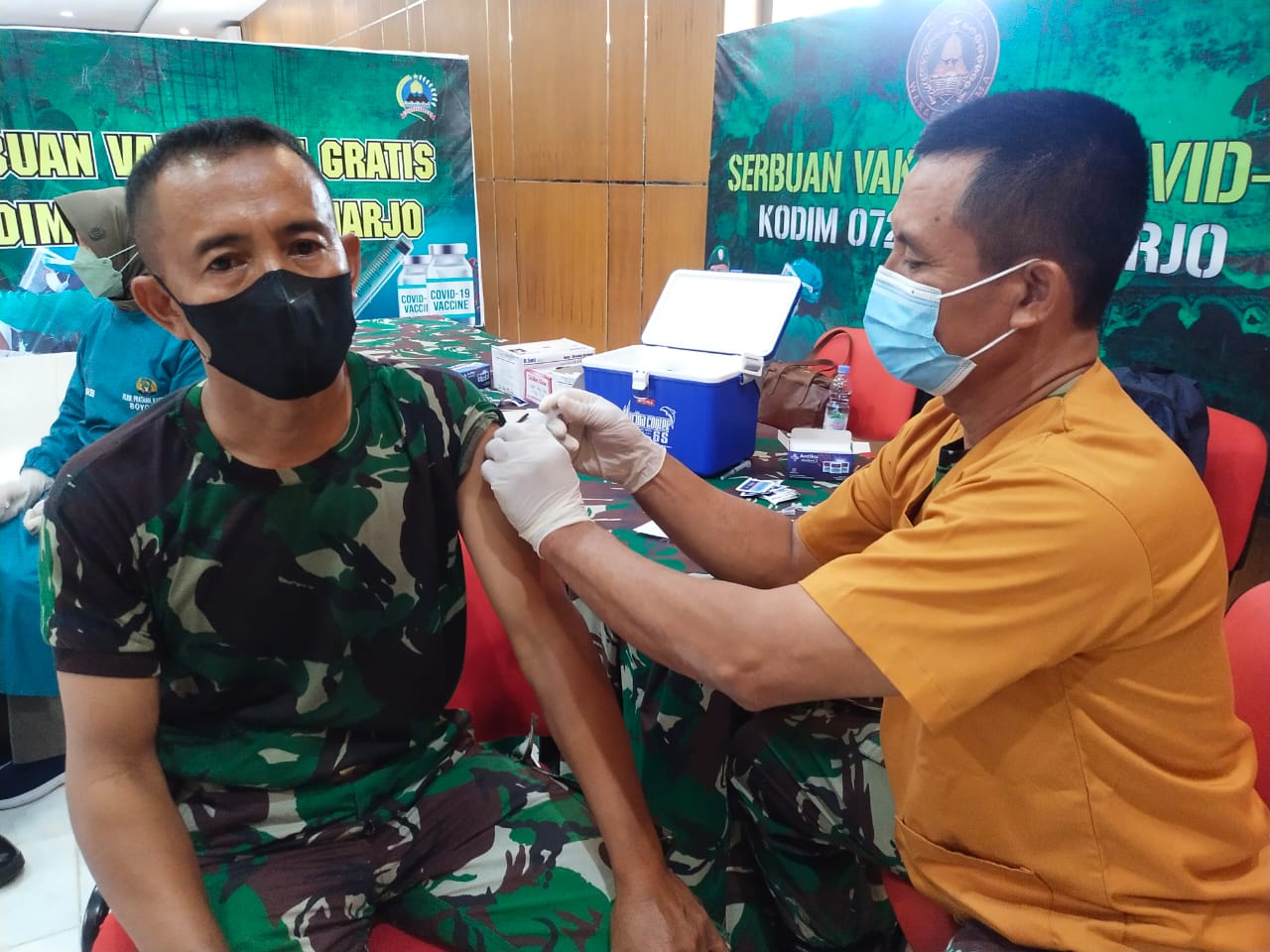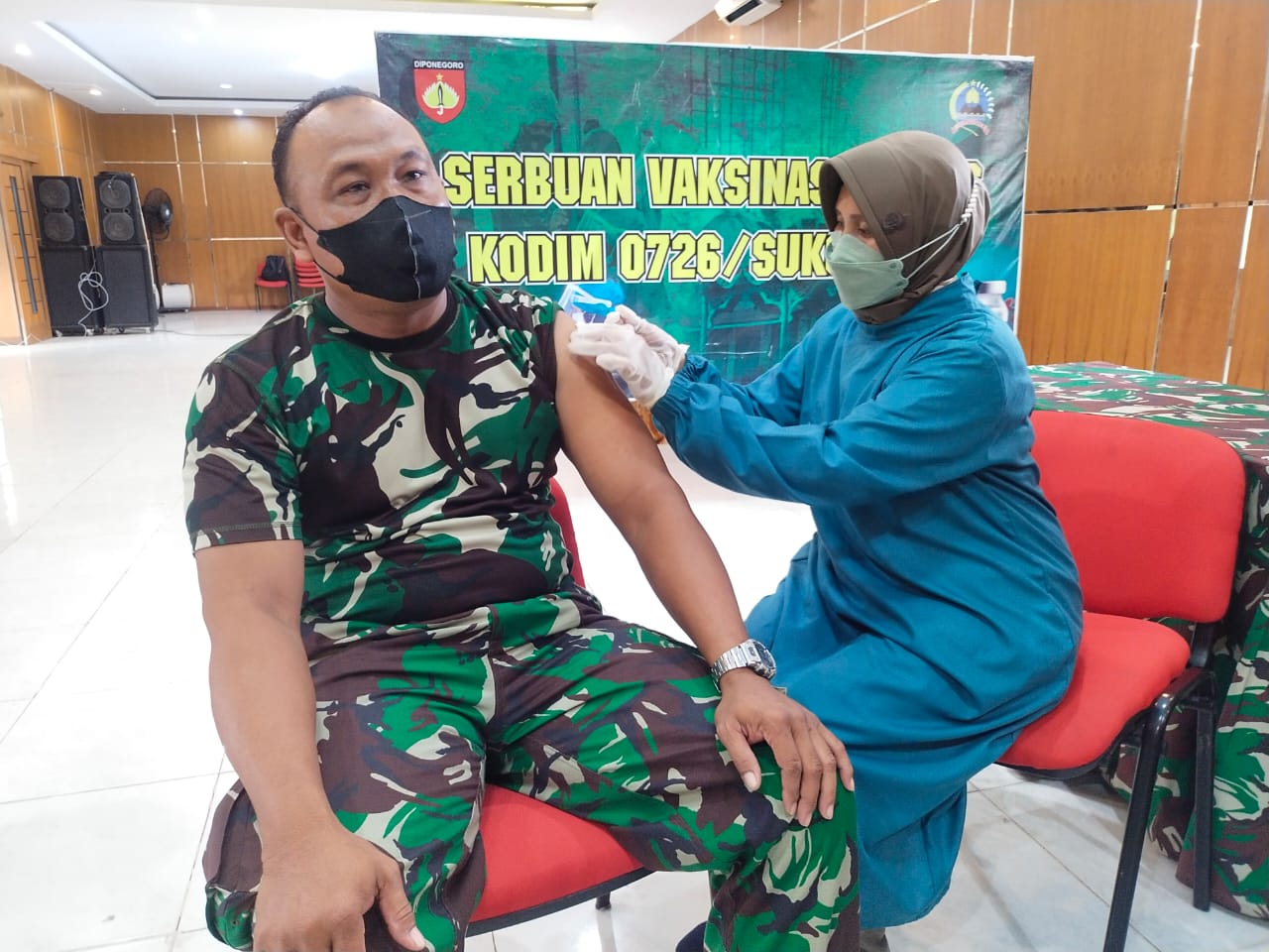 Hari ini ditargetkan sekitar 100 dosis vaksin moderna diberikan kepada Prajurit dan PNS Kodim 0726/Sukoharjo sebagai salah satu upaya satuan untuk membentengi diri bagi para prajuritnya.
