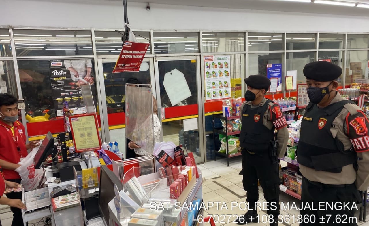Dalam kesempatan tersebut anggota Patroli Sat Samapta Polres Majalengka memberikan himbauan kepada karyawan alfamart agar dapat mematuhi dan mengikuti adaptasi kebiasaan baru untuk dapat memutus penyebaran Covid -19 dengan menjalankan protokol kesehatan, mengunakan masker, tidak berkerumun, jaga jarak serta mencuci tangan saat masuk atau keluar dari ruangan.