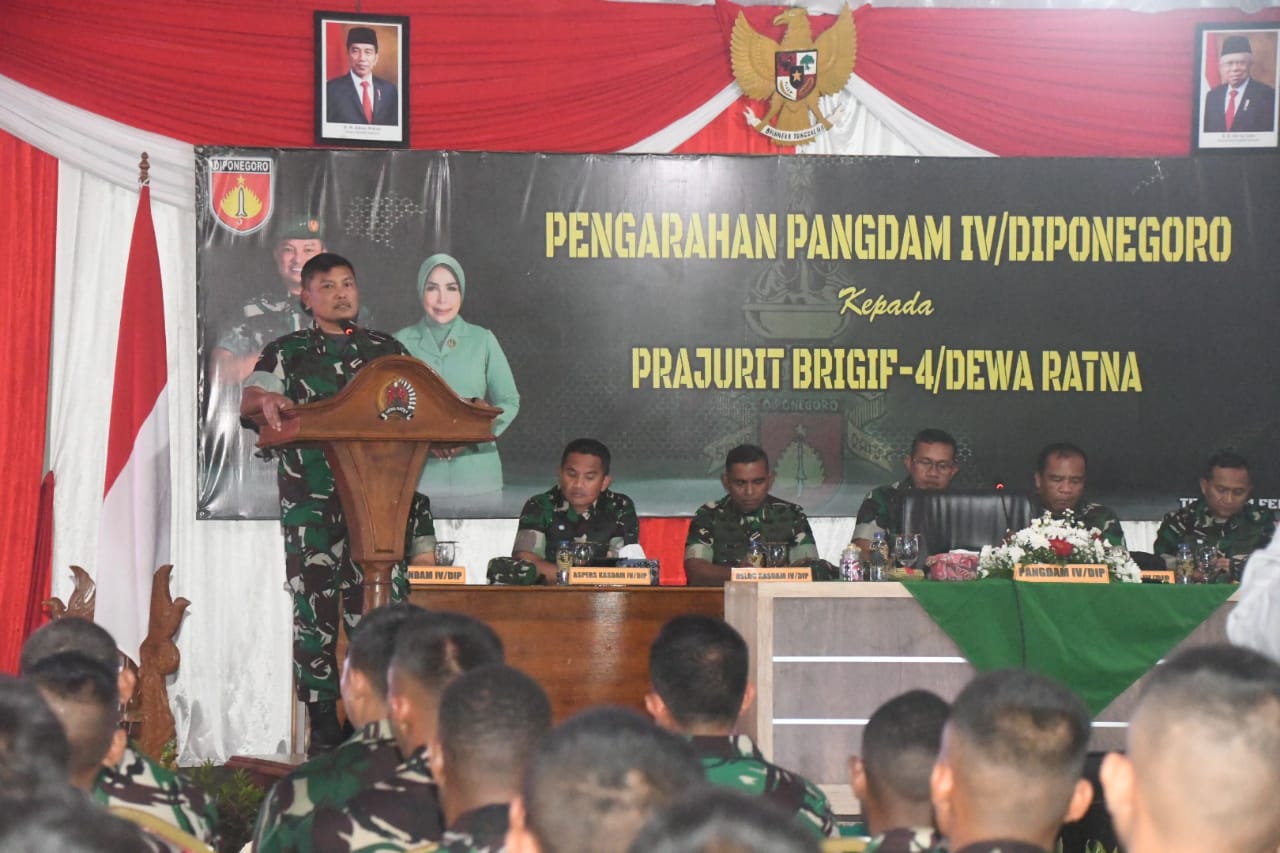 Pangdam IV/Diponegoro Mayjen TNI Widi Prasetijono kunjungi Markas Komando Brigade Infanteri (Brigif) 4/Dewa Ratna untuk melihat langsung kondisi satuan sekaligus meningkatkan moril Prajurit Dewa Ratna melalui pengarahannya yang digelar di Mako Brigif. Selasa (14/02/2023).