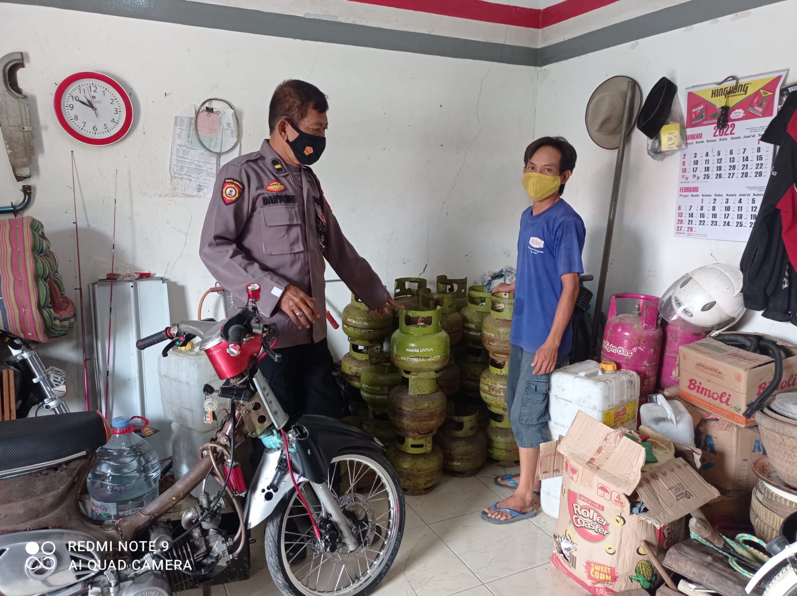 Menjelang bulan Ramadhan, Bhabinkamtibmas Desa Kendalrejo Polsek Petarukan Polres Pemalang Ipda Daryono memantau persediaan dan harga sembilan bahan pokok (sembako), seperti minyak goreng kemasan dan tabung gas subsidi 3 kilogram di sejumlah toko kelontong, Minggu (13/3/2022).