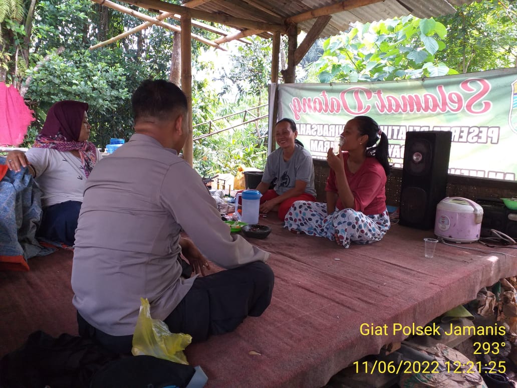 Tasik Kota – medialidikkrimsus-ri.net – Bhabinkamtibmas Desa Sindangraja Polsek Jamanis Aipda Sholihin Abdillah melaksanakan Koordinasi dan Komunikasi (Korkom) sampaikan Pesan Kamtibmas dan Himbauan Vaksinasi kepada warga Kampung Cijoho Desa Sindangraja Kecamatan Jamanis Kabupaten Tasikmalaya, Sabtu (11/06/2022).