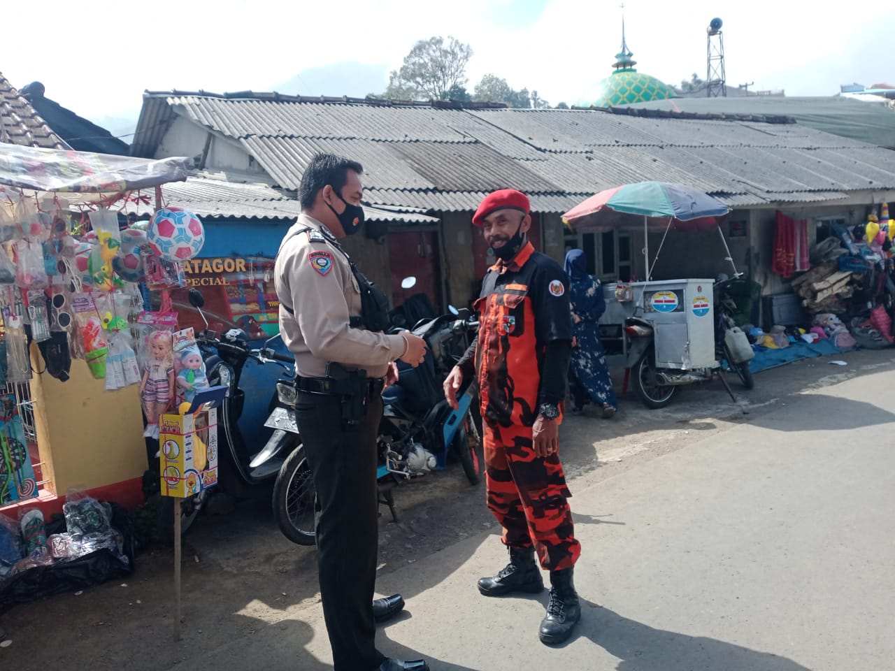 Dialogis Bhabinkamtinmas dengan petugas parkir menyampaikan pesan – pesan kamtibmas agar membantu kepolisian dalam mewujudkan Kamtibmas yang aman dan kondusif serta apabila terjadi tindak pidana maupun gangguan Kamtibmas lainnya agar segera melapor ke Polsek Argapura.
