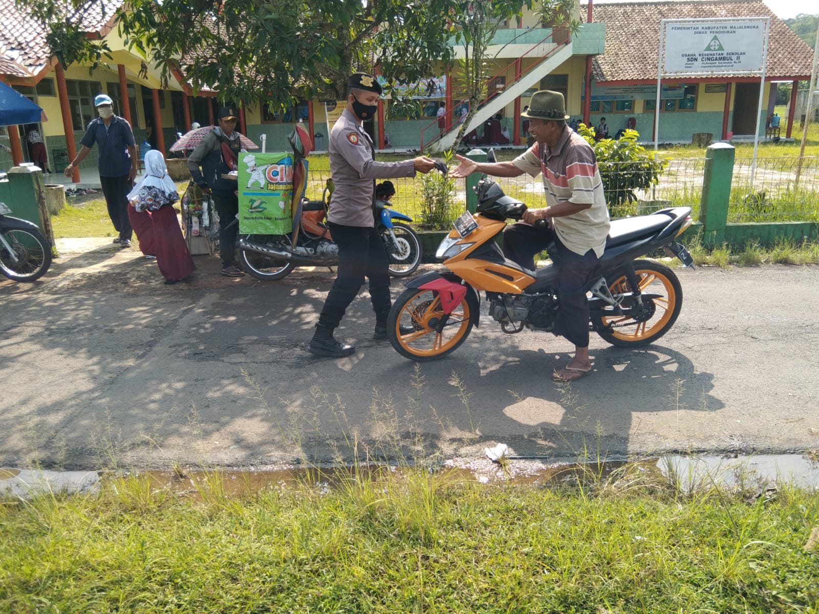 “Kita tidak henti-hentinya menghimbau masyarakat agar patuh protkes dengan membiasakan mencuci tangan pakai sabun, hindari kerumunan/keramaian, serta wajib menggunakan masker pada saat di luar rumah,” Jelas Kapolsek Cingambul.