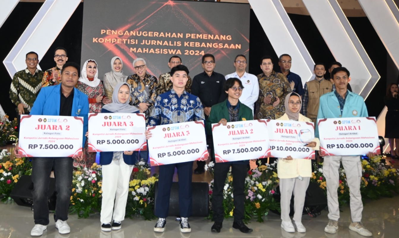 Penyelenggaraan Kompetisi Jurnalis Kebangsaan Mahasiswa BNPT 2024 telah berakhir dengan sukses dan ditutup dengan puncak acara Pengumuman dan Penyerahan Penghargaan Para Pemenang oleh Badan Nasional Penanggulangan Terorisme di Gedung Penunjang Operasional (GPO) TVRI Jakarta, Kamis (23/01/2024). Setelah melalui proses sosialisasi, penjaringan peserta, dan pelaksanaan kompetisi selama kurang lebih 8 bulan, Kompetisi JKM BNPT 2024 ini berhasil menentukan 6 orang mahasiswa pemenang kompetisi yang dari beberapa perguruan tinggi.