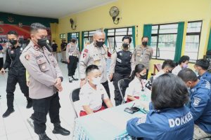 SEMARANG – medialidikkrsus-ri.net . Mendukung program vaksinasi covid-19 untuk anak-anak, Polda Jateng menggelar kegiatan di SD Kemala Bhayangkari 02, Pedurungan Kota Semarang. Kegiatan yang digelar dengan tajuk Vaksinasi Merdeka Anak itu dihadiri Wakapolda Jateng Brigjen Abioso Seno Aji didampingi PJU Polda Jateng dan Kapolrestabes Semarang. Rabu, (5/1/2022).