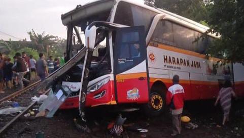 Bus Harapan Jaya Tertabrak Kereta Api di Tulungagung