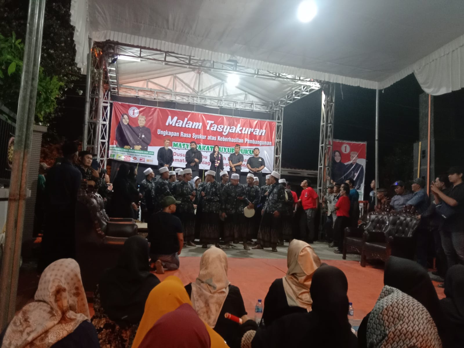 Para pendukung yang hadir dalam acara tasyakuran menyampaikan dukungan penuh kepada Ikfina dengan yel-yel.