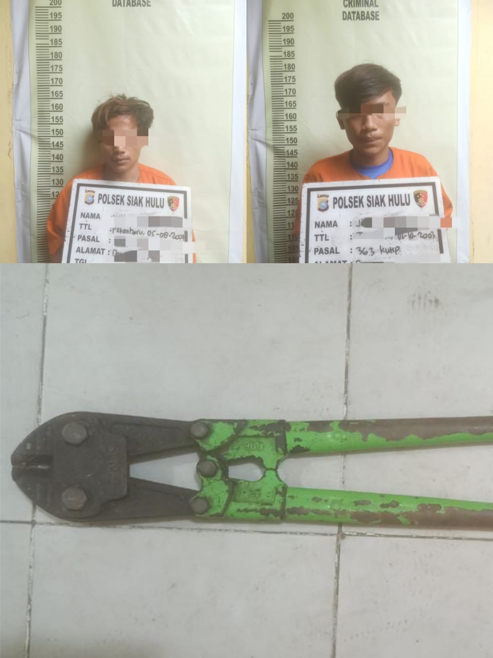 Pelaku adalah JP (19) warga Desa Baru, Kecamatan Siak Hulu dan KA (18) warga Desa Minas Barat, Kecamatan Minas, Kabupaten Siak. Dari penangkapan keduanya diamankan barang bukti yaitu Gunting Besi