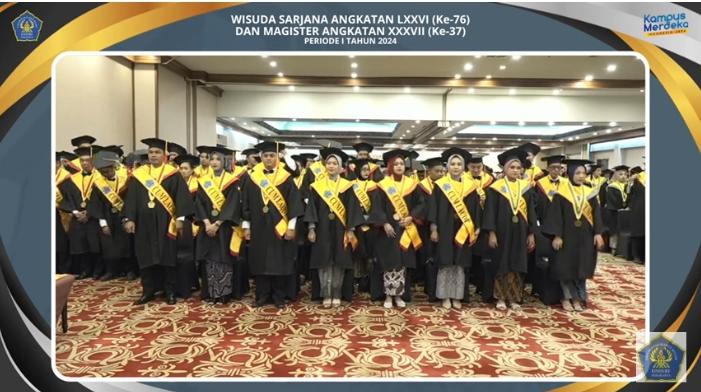Kemudian dilanjutkan Upacara Wisuda Sarjana Angkatan LXXVI (Ke-76) dan Magister Angkatan XXXVII (Ke-37) yang digelar di The Sunan Hotel Solo, Kamis (9/5/2024).