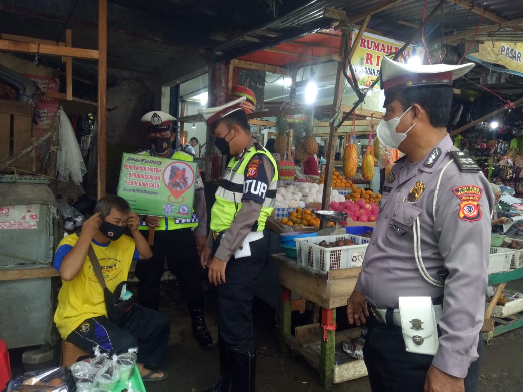 Majalengka – medialidikkrimsus-ri.net – Polres Majalengka Polda Jabar, Satgas (Satuan Tugas) Preemtif Sub Satgas Kamsel Lantas Ops Keselamatan Lodaya Tahun 2022 kembali membagikan masker kepada pengguna jalan dilokasi Pasar Kadipaten Kabupaten Majalengka. Sabtu (12/3/2022).