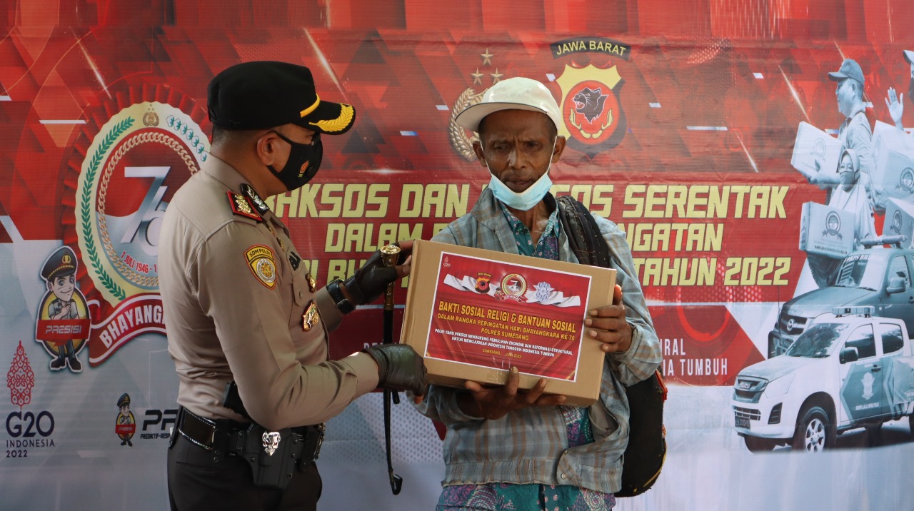 Dalam kegiatan Baksos religi secara serentak tersebut Polres Sumedang menyerahkan bantuan secara Simbolis kepada warga masyarakat dengan jumlah bantuan sebanyak seratus paket.