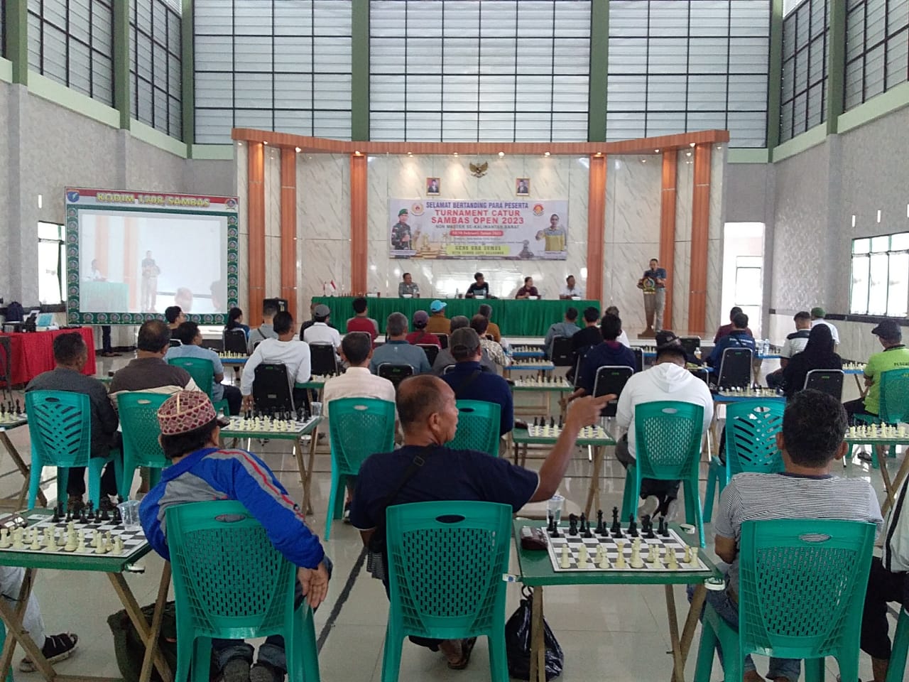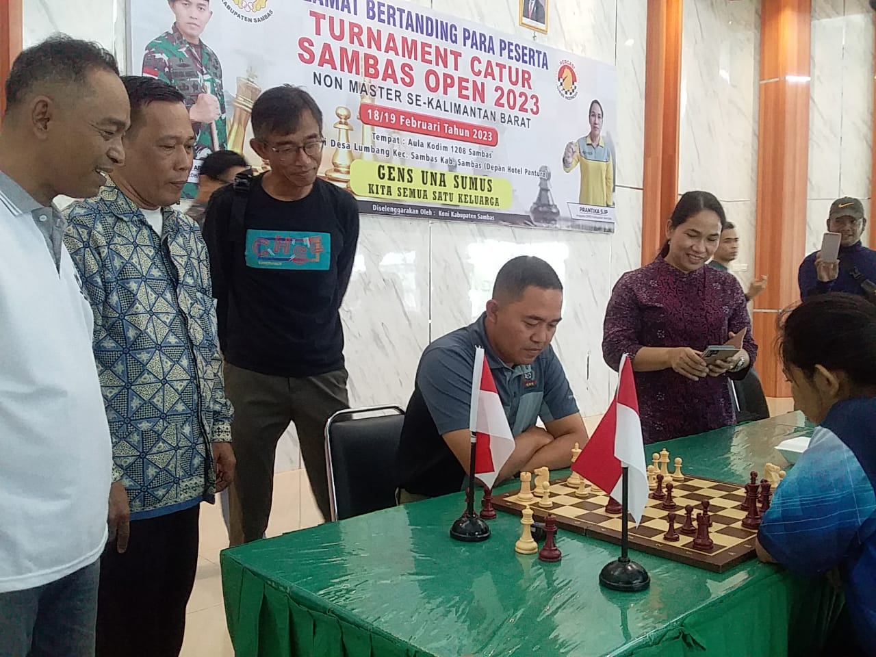 Komandan Kodim 1208/Sambas membukan Turnamen Catur Sambas Open 2023 Non Master Se-Kalimantan Barat bertempat di Aula Kodim 1208/Sambas, Jalan Tabrani, Desa lumbang, Kec. Sambas, Kab. Sambas, Kegiatan dilaksanakan dua hari ( 18-19/02/23).