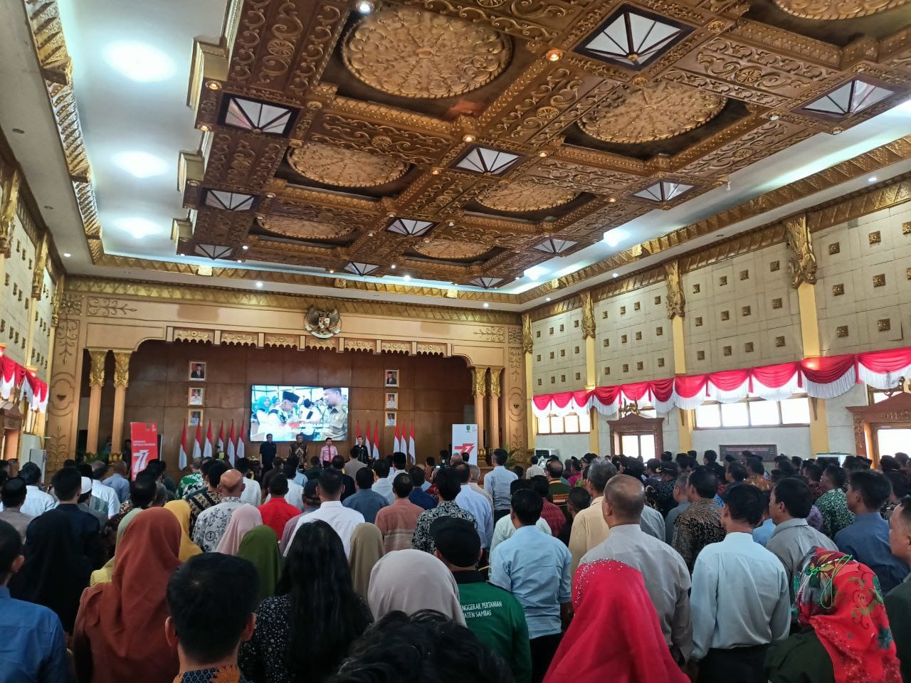 Kegiatan dihadiri, Gubernur Kalimantan barat, H. Sutarmidji, S.H.,M. Hum., Wakil ketua DPRD Provinsi Kalbar, Ir. H. Prabasa Anantatur M.H, Kepala Bappeda Provinsi Kalimantan Barat, Ir. Sukaliman, MT, Bupati Sambas, H. Satono S.Sos.I.MH, Ketua DPRD Kabupaten Sambas, Ir. H. Abu Bakar M.Si, Sekda Kab. Sambas, Ir. H. Ferry Madagaskar M.Si, Dandim 1208/Sambas Letkol Inf Dadang Armada Sari. S.I.P, Waka Polres Sambas, Kompol M.Anditya Sik.MA, Kasi Intel Kejari Sambas, Dudy, Yonif 645/Gty, Serka Chabib, Para Kepala OPD di lingkungan pemerintahan Kabupaten Sambas, Para Kadis, Kabag, Kakan, Kabid dan Kabad di lingkungan pemerintahan kabupaten Sambas, Para Camat se-kabupaten Sambas, Para kades se-kabupaten Sambas, LSM/Organisasi profesi serta tamu undangan.
