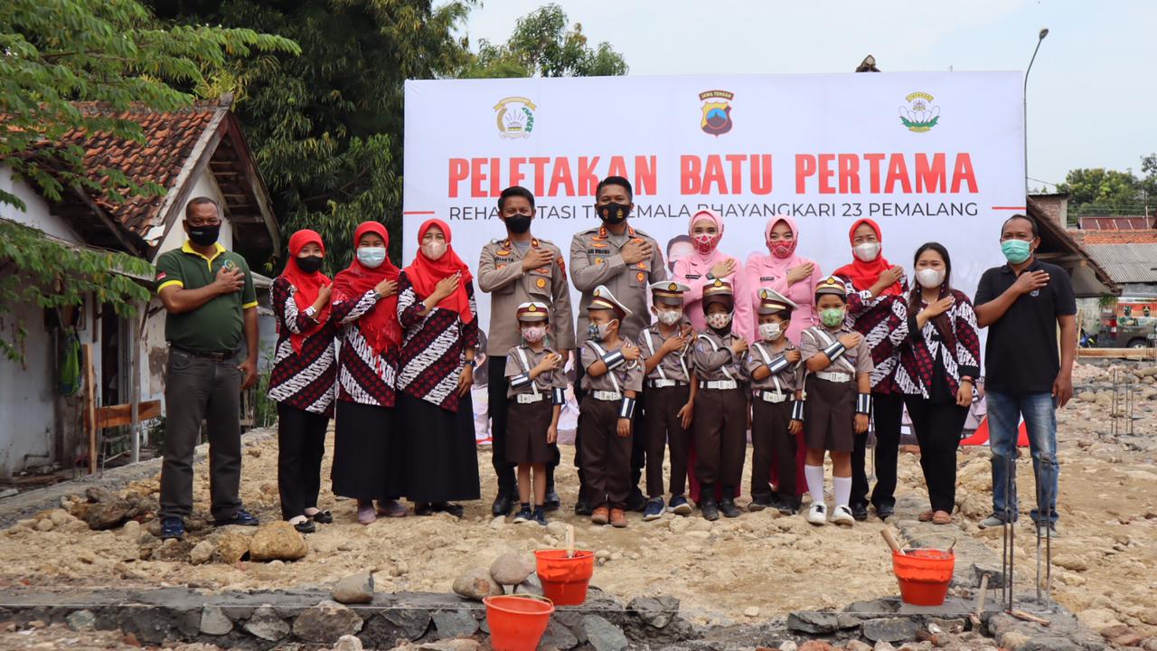 Pemalang – medialidikkrimsus-ri.net – Ditandai dengan prosesi peletakan batu pertama oleh Kapolres Pemalang AKBP Ari Wibowo bersama Ibu Ketua Bhayangkari Cabang Pemalang Ny. Anti Ari Wibowo, Kamis (25/03/2022), rehabilitasi TK Kemala Bhayangkari 23 Pemalang mulai dikerjakan dengan dukungan penuh dari Pemerintah Kabupaten Pemalang melalui Dinas Pendidikan dan Kebudayaan.