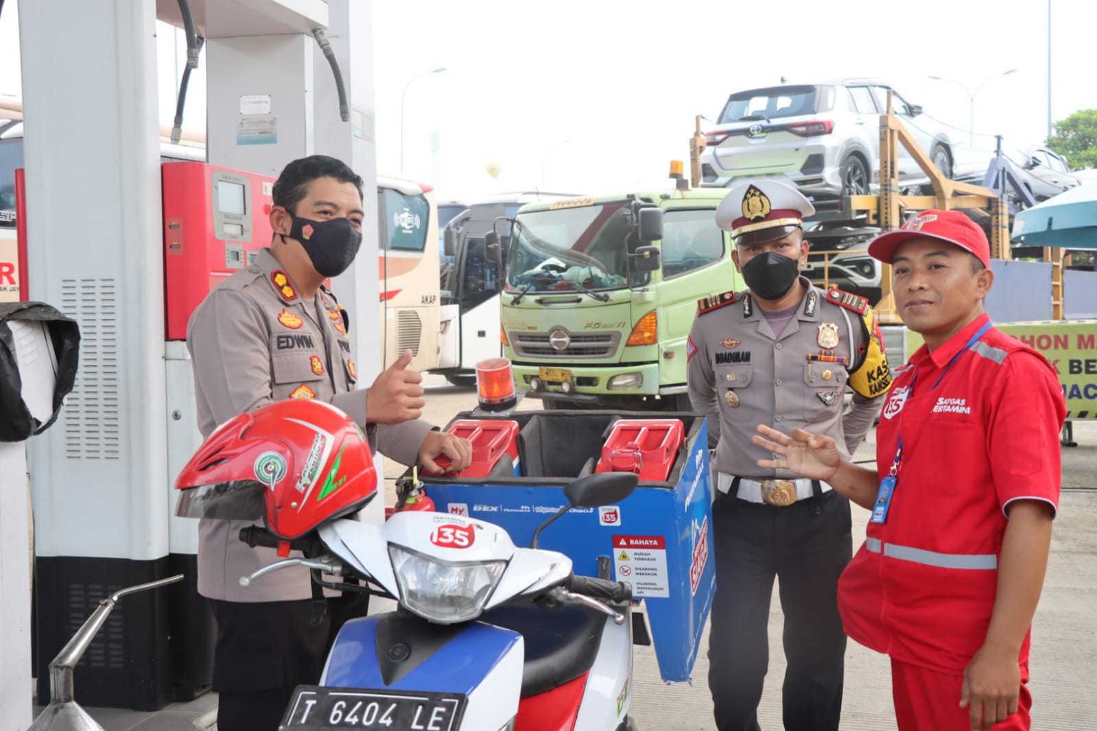“Bagi Anda yang kehabisan bensin silakan telepon ke hotline telepon / Call Center 135 atau ke hotline kepolisian 110 untuk memberi tahu posisi, petugas akan menuju ke lokasi pemudik yang kehabisan BBM,” kata Kapolres Majalengka.