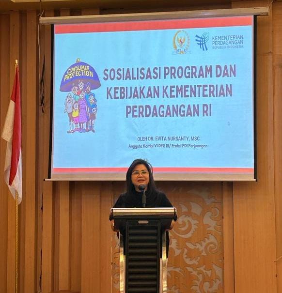 Hal itu disampaikan politisi PDI Perjuangan ini dalam Sosialisasi Program dan Kebijakan Kementerian Perdagangan RI khususnya terkait dengan isu perlindungan konsumen sebagaimana diamanatkan oleh UU Nomor 8 Tahun 1999 tentang Perlindungan Konsumen, di Ballroom Hotel 21 Purwodadi, Kabupatan Grobogan, Jawa Tengah (Jateng), Jumat (28/7/2023) pagi.