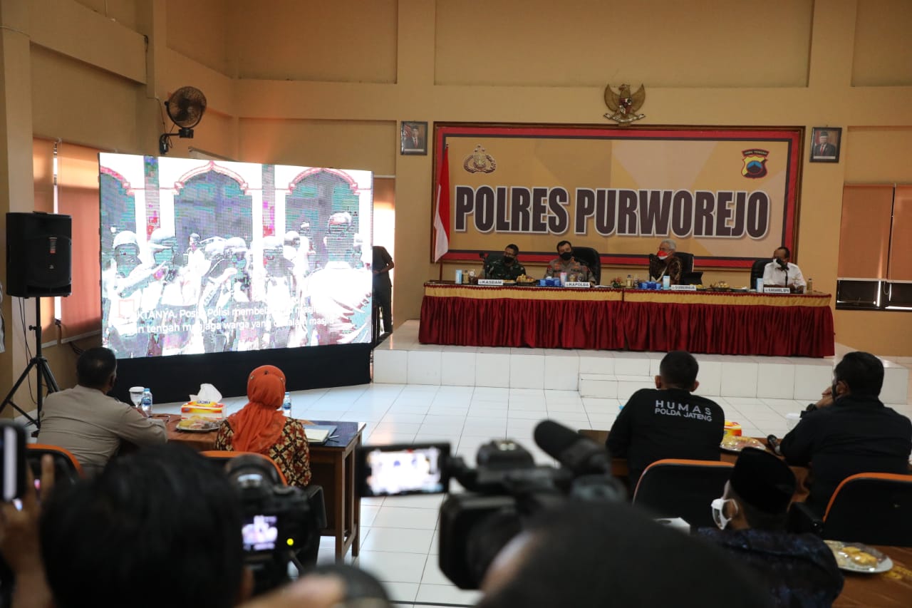Dalam konferensi pers yang digelar di Aula Mapolres Purworejo, turut hadir Kepala Kanwil BPN Prov Jateng Dwi Purnama, serta Kasdam IV Diponegoro Brigjen TNI Parwito serta staf ahli dari Kemenko Marves, Rabu, (09/02).