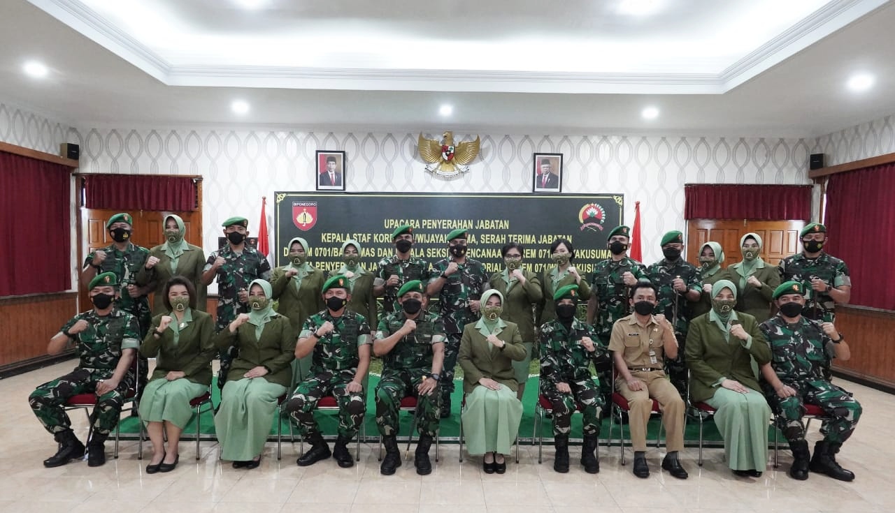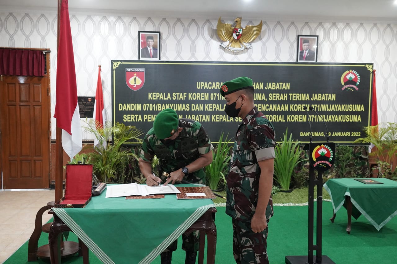 Kegiatan dilaksanakan melalui upacara Penyerahan Jabatan Kasrem 071/Wijayakusuma, Serah Terima Jabatan Dandim 0701/Banyumas dan Kasiren Korem 071/Wijayakusuma, serta Penyerahan Jabatan Kasiter Korem 071/Wijayakusuma dari Danrem 071/Wijayakusuma.