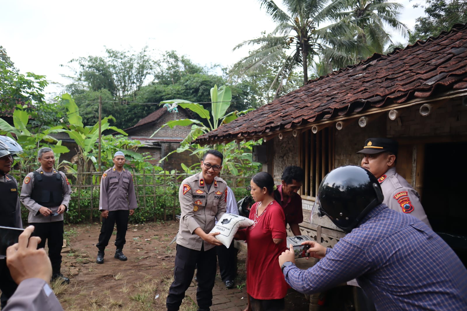 Tidak hanya melakukan patroli dengan menggunakan sepeda motor Kapolres Purworejo bersama stafnya mendatangi rumah dan membagikan sembako kepada masyarakat yang kurang mampu.