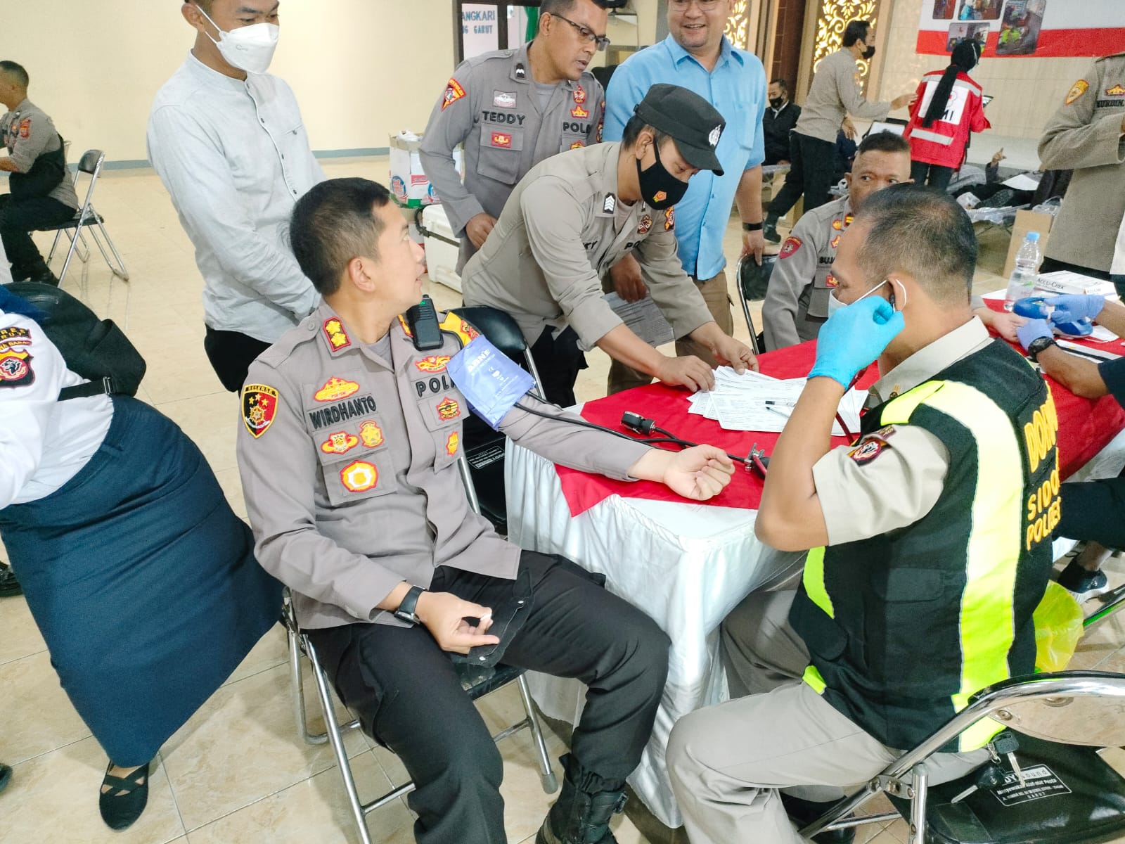 “Dilaksanakan Kegiatan Bakti kesehatan Polri Donor Darah adalah dalam rangka rangkaian menjelang hari ulang tahun Bhayangkara ke-76 Tahun 2022 “, ujar Kasi Humas Polres Garut Ipda Cahya