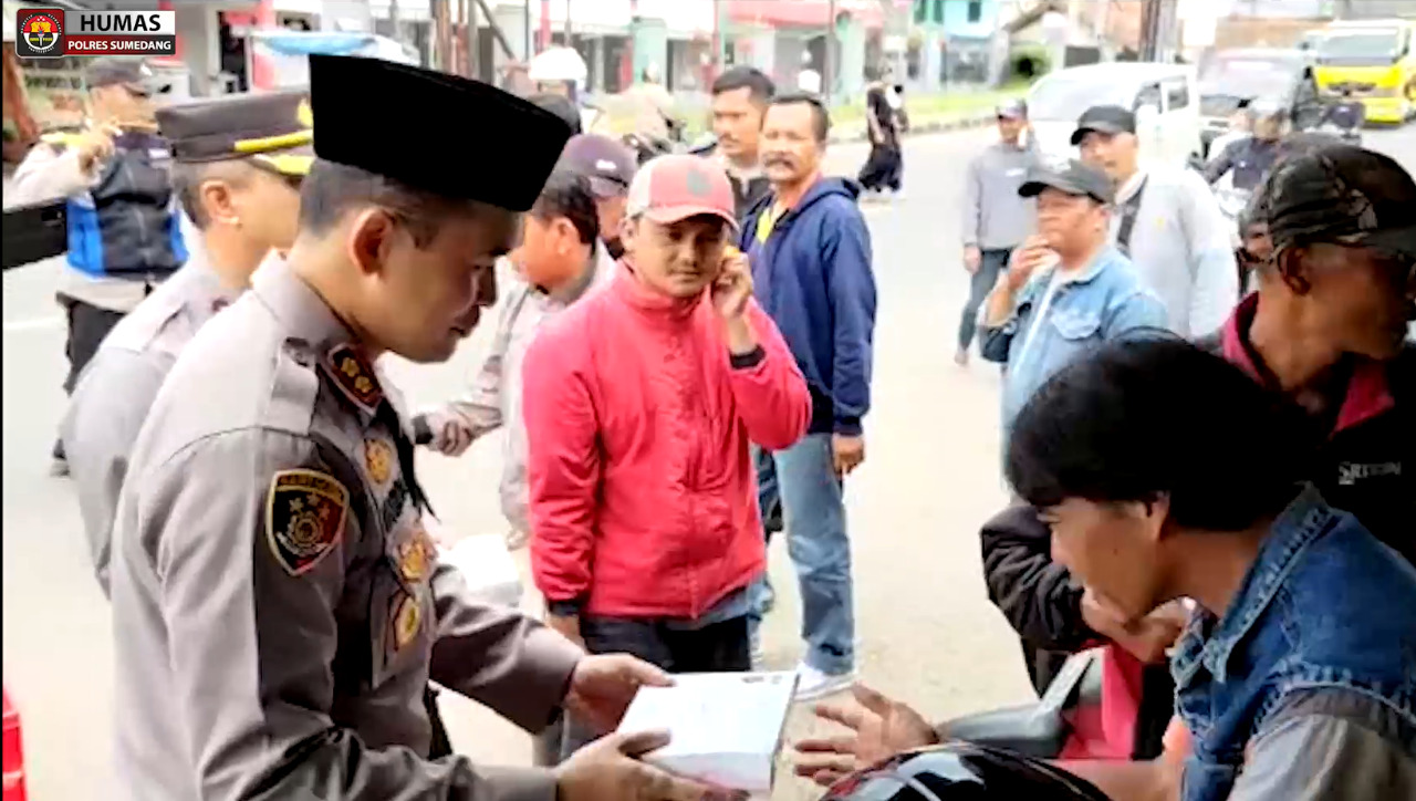 “Alhamdulilah hari ini kami dari Polres Sumedang dapat melaksanakan kegiatan Jum’at Berkah dengan berbagi makanan berupa Nasi Kotak kepada warga masyarakat di wilayah Jatinangor dan Tanjungsari”. Tutur Kapolres Sumedang.