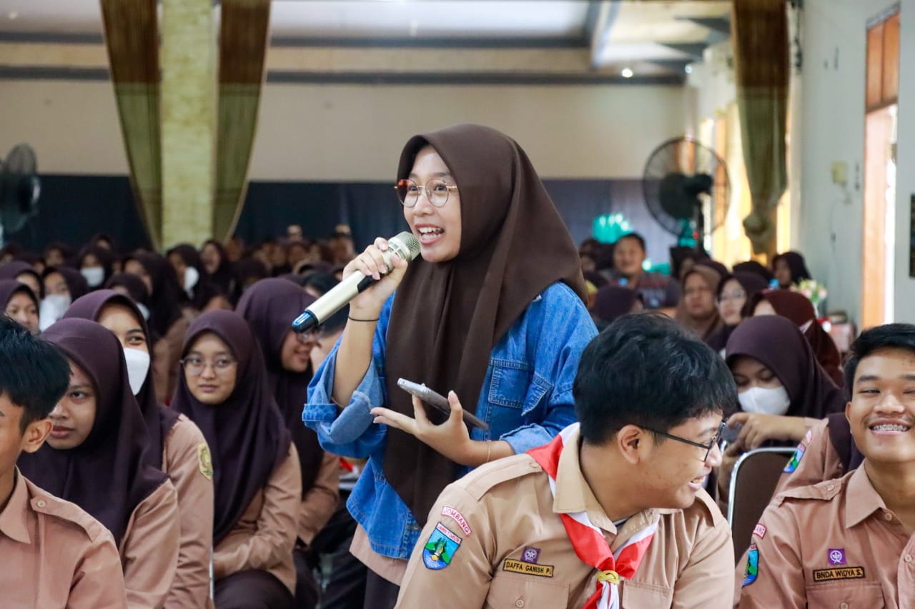 Setelah memberikan pemaparan dan perkenalan diri, dilakukan tanya jawab. Sejumlah siswa siswi dan juga guru antusias melakukan tanya jawab.