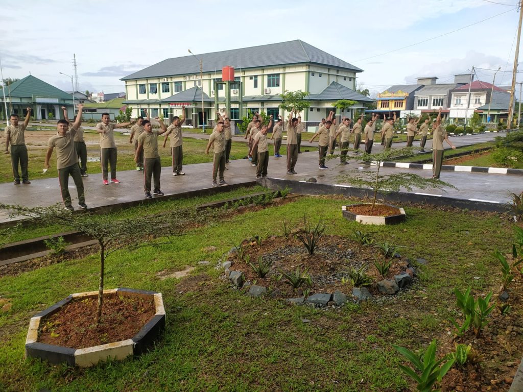 Setelah melaksanakan apel pagi senam bersama lansung dipimpin oleh salah satu personel Kodim 1208/Sambas Serda Robi dan di ikuti oleh seluruh Anggota.