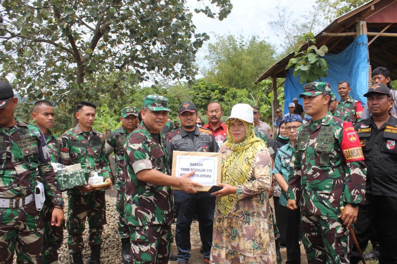 Kapok Sahli Pangdam IV/Diponegoro Brigjen TNI Joko Triyanto, SE, MM., tinjau langsung pengerjaan sasaran fisik TMMD Reguler ke-115 Kodim 0719/Jepara, sekaligus menyapa dan berikan bantuan sosial kepada masyarakat Dukuh Grobokan, Desa Ujungwatu, Kecamatan Donorojo. Kamis (27/10/2022).