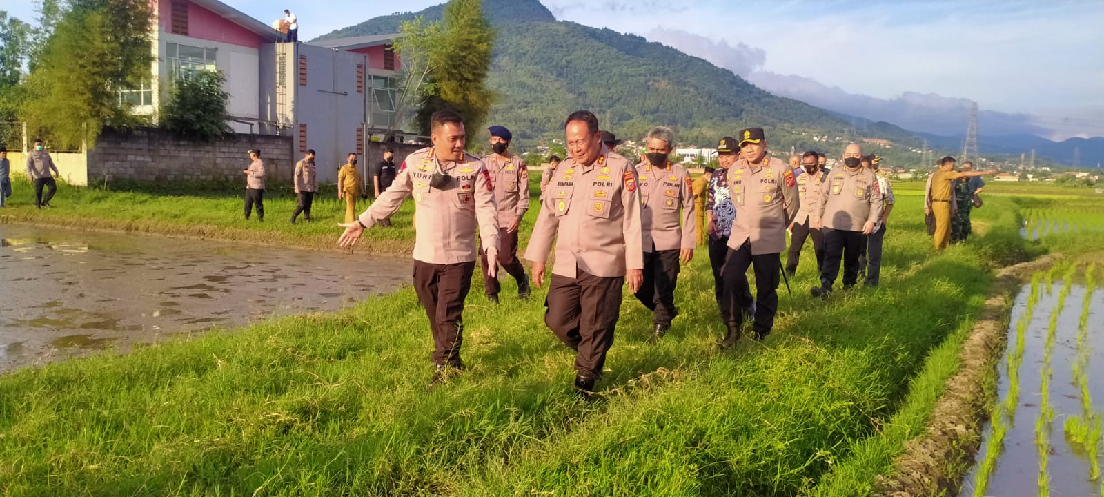 Didampingi Pejabat Utama Polda Jabar dan Kapolres Sumedang AKBP Eko Prasetyo Robbyanto beserta Bupati Sumedang Doni Ahmad Munir, Irjen. Pol. Suntana meninjau lahan seluas kurang lebih 1,2 hektar yang akan dipergunakan untuk perluasan Mako Sat Brimob Polda Jabar.