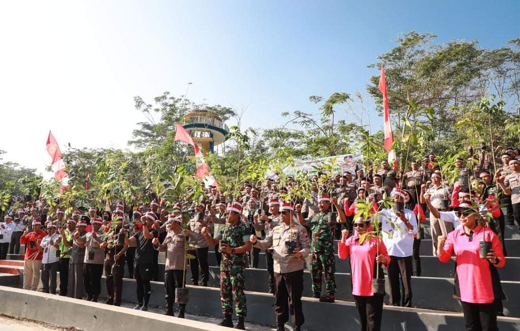 Di wilayah jawa Tengah Kapolda Jateng Irjen Pol Ahmad Luthfi memimpin kegiatan penanaman pohon serentak berlokasi di sekitar Waduk Jatibarang Kecamatan Gunungpati Semarang, Rabu (23/8/2023).