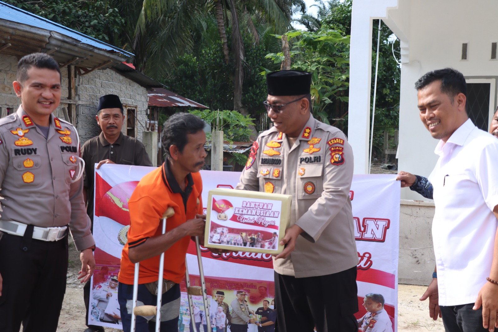 BANGKINANG/medialidikkrimsus-ri-net. Kapolres Kampar AKBP Didik Priyo Sambodo SIK langsung pimpin penyerahan bantuan kemanusian untuk negeri di lingkungan Sei Jernih, Kelurahan Pasir Sialang, Kecamatan Bangkinang, Rabu (29/3/2023) sekira pukul 15.30 WIB.