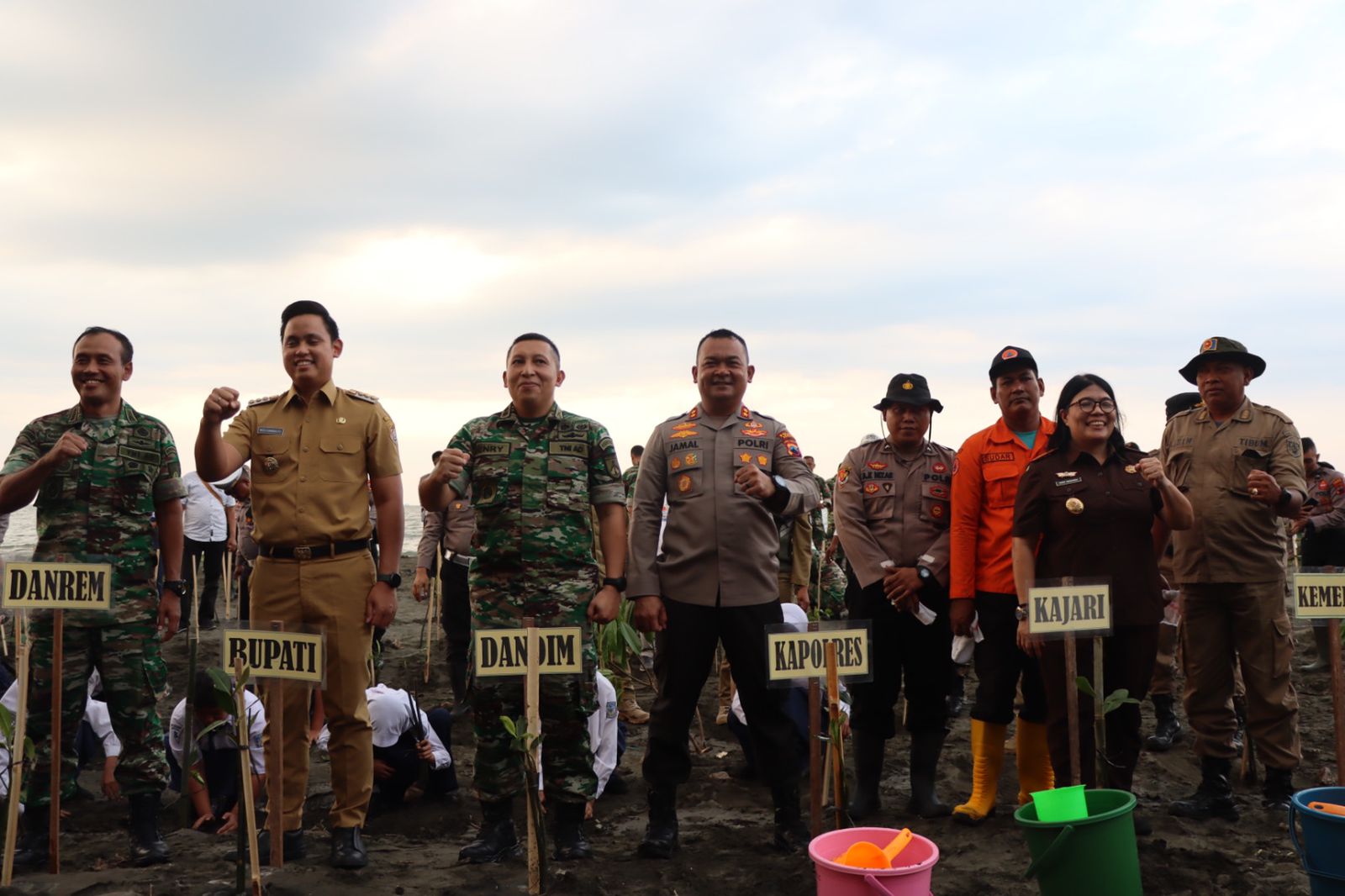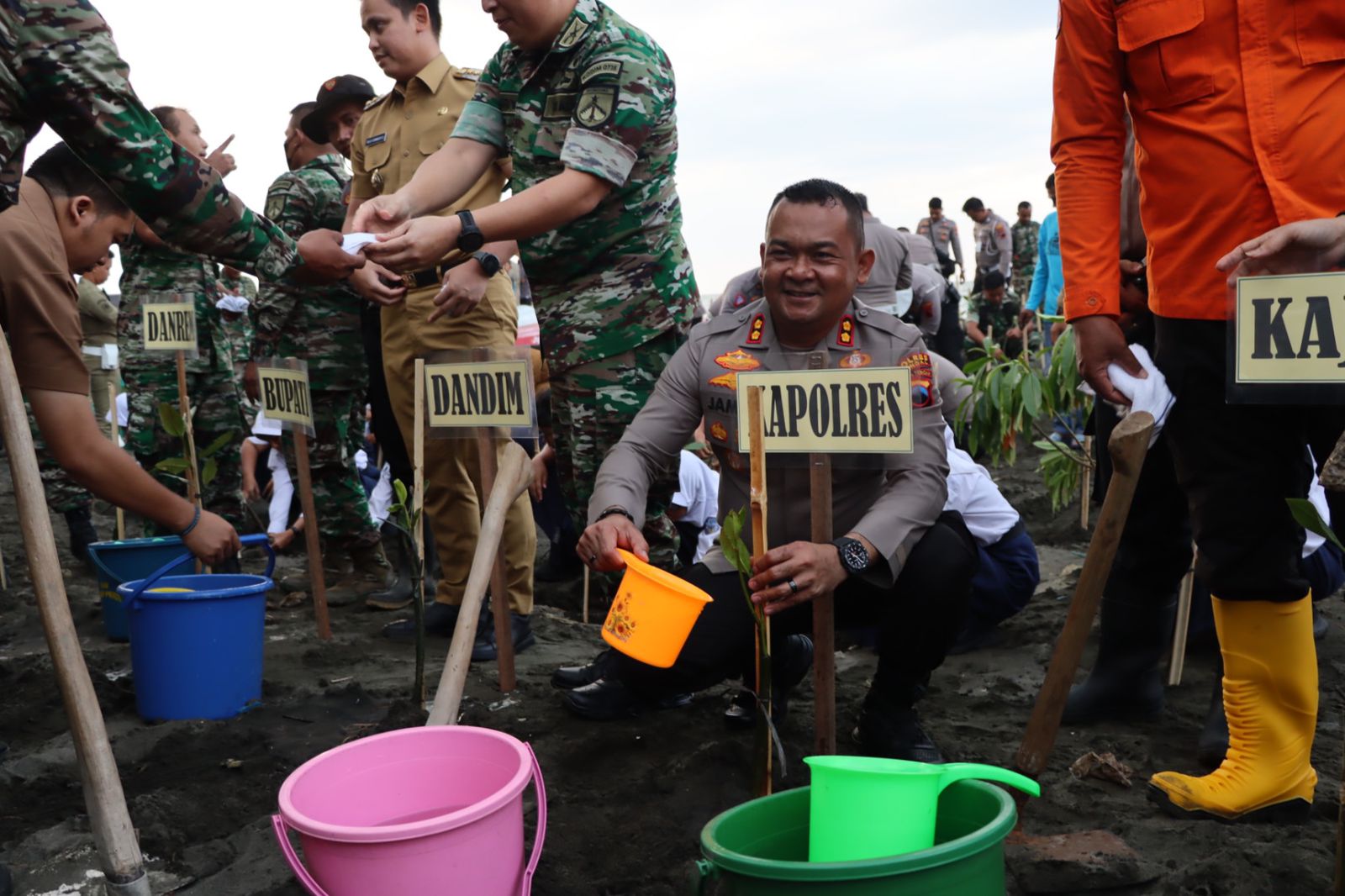 Kapolres Kendal Ikut Serta Penanaman Mangrove Nasional Secara Serentak Oleh Jajaran TNI di Pantai Ngebum